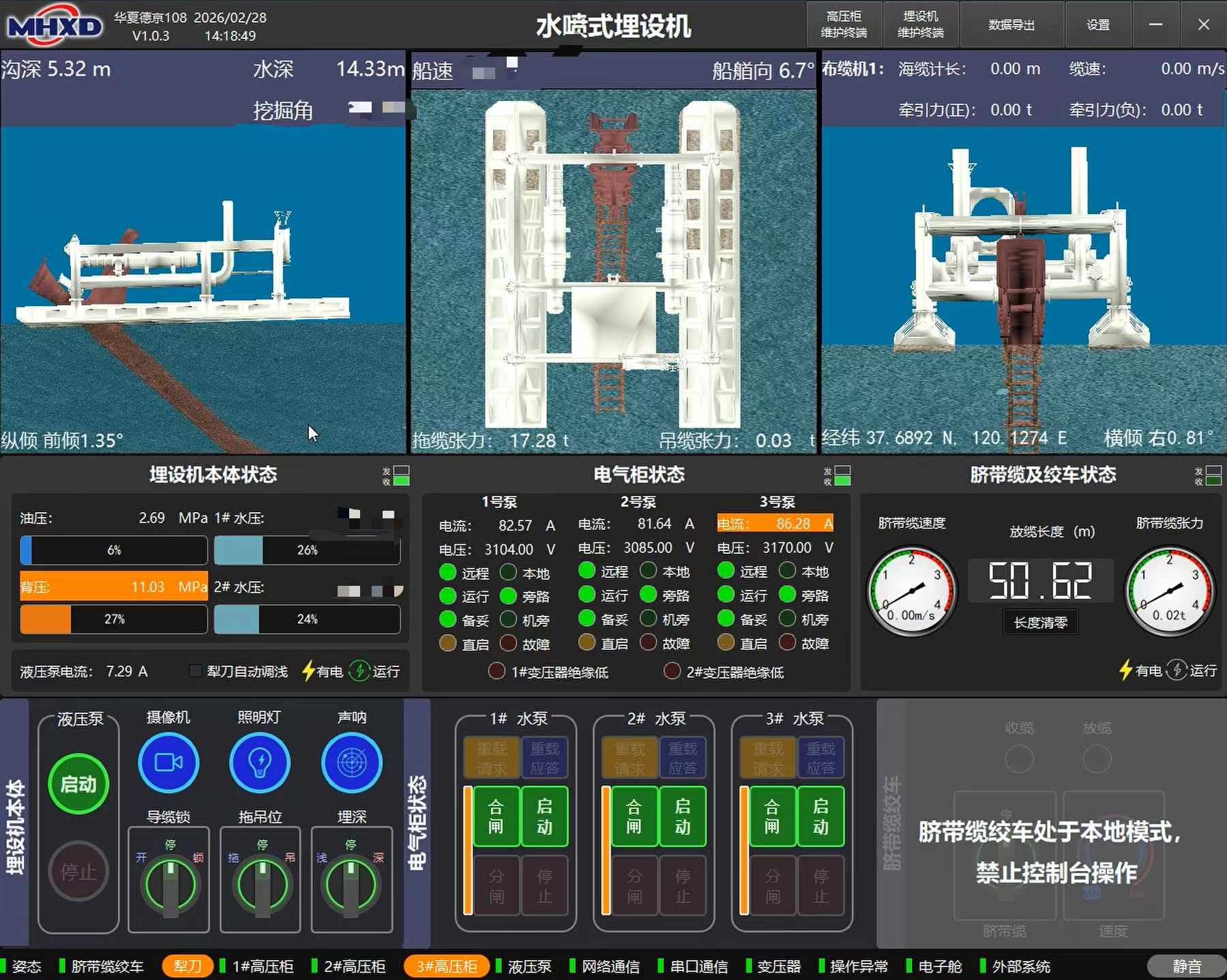 脚踏实地,求真务实。2月28日,在船东和多位受邀业主的现场见证下,明华信达最新交付的埋设犁连续成功完成了第二次海试,最大埋深达5.32m!